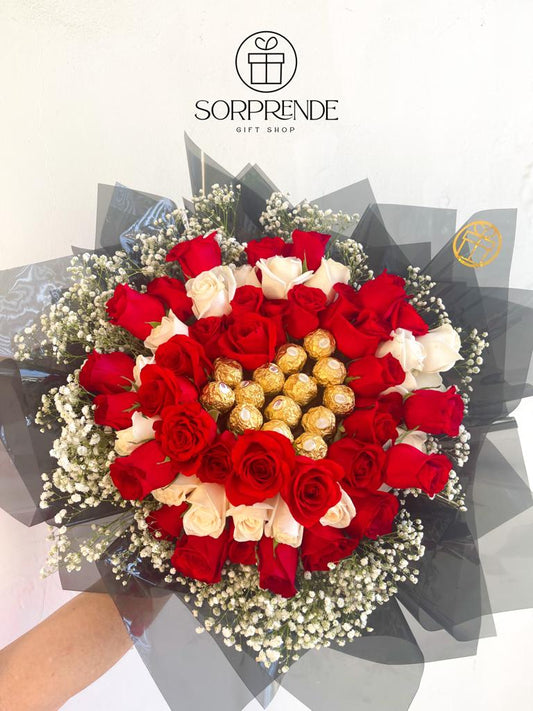 Luxury Bouquet 50 Rosas + Ferrero